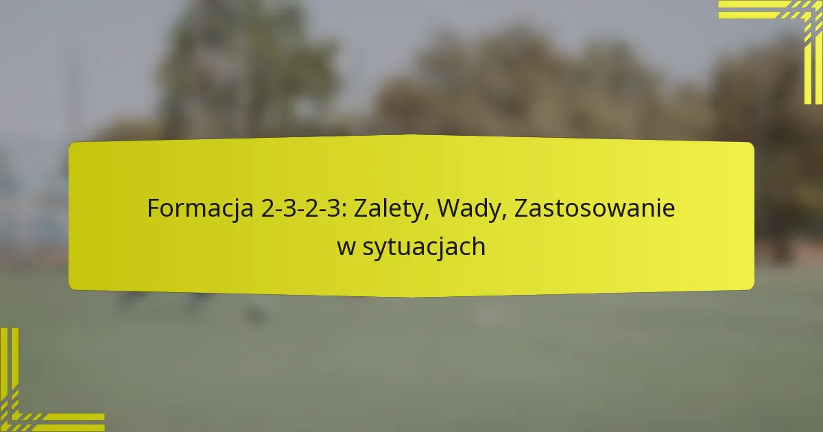Formacja 2-3-2-3 to ustawienie taktyczne w piłce nożnej, które składa się z dwóch obrońców, trzech pomocników, dwóch napastników i bramkarza. Ta formacja kładzie nacisk na silną obecność w środku pola, jednocześnie utrzymując solidność defensywną i opcje ataku. Odpowiedzialności defensywne w tej formacji wymagają zorganizowanego podejścia do krycia i pokrycia strefowego, zapewniając, że każdy zawodnik przyczynia …